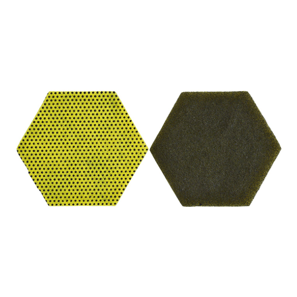 is a versatile hexagon-shaped scouring pad designed for commercial kitchens and intense cleaning environments.
