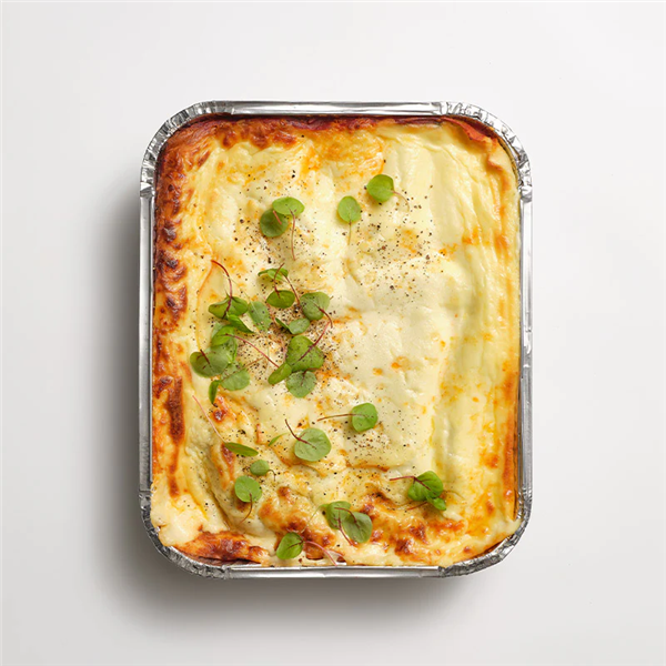 Layers of rich spinach and ricotta sauce between fresh sheets of pasta topped with a mornay sauce. Item comes as frozen, packaged item. Stock image used in display. Vegetarian. No added MSG. Size: 2.1kg