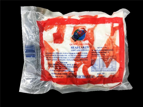 Premium surimi product that has been flaked and can be used in seafood salads, crab cakes or sushi rolls. Frozen product. 10 packets to a carton