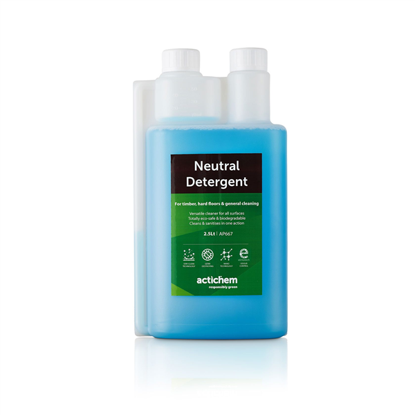 PRODUCT DESCRIPTION. Neutral Detergent is a next-generation, pH-neutral floor cleaner designed for safe, streak-free cleaning of delicate and pH-sensitive surfaces. Formulated with advanced nano-surfactant technology, Neutral Detergent rapidly lifts oily soils and grime without damaging natural stone, marble, polished wood, or polymer-coated floors. Its non-toxic, lemon-scented formula delivers a spotless, non-slip finish with zero haziness or residue—making it ideal for daily maintenance. Suitable for both auto-scrubbers and manual mopping, this high-dilution concentrate offers excellent value for commercial, institutional, and residential use