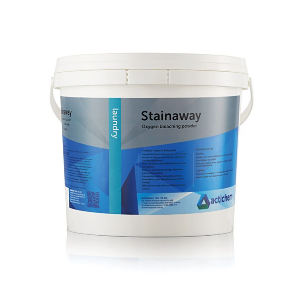 Actichem Stainaway 4.5kg is a powerful oxygen-based powdered stain remover designed to lift and eliminate stubborn stains from carpets, upholstery, and fabrics.