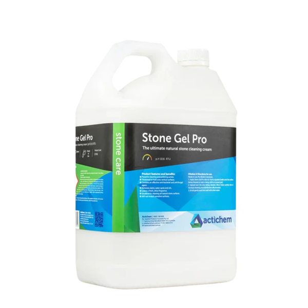 Actichem Stone Gel Pro 5L is a professional-grade gel cleaner formulated specifically for cleaning and restoring stone, masonry, and hard surface materials.