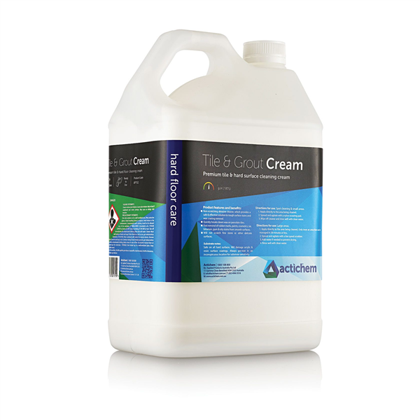 Actichem Tile & Grout Cream 5L is a professional heavy-duty cleaner designed to remove stubborn soil, grease and buildup from tiled surfaces and grout lines.