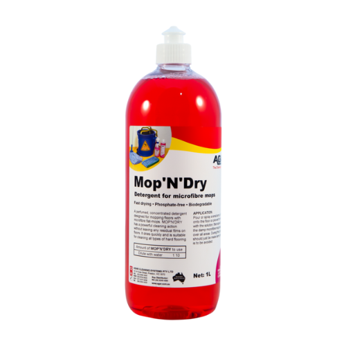 Mop'N'Dry is a powerful, fast-drying detergent specially formulated for use with microfibre mops and spray-and-glide systems.