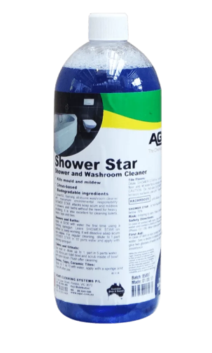 Powerful shower and bathroom cleaner formulated to remove soap scum, body fats, mineral deposits and grime from wet-area surfaces.