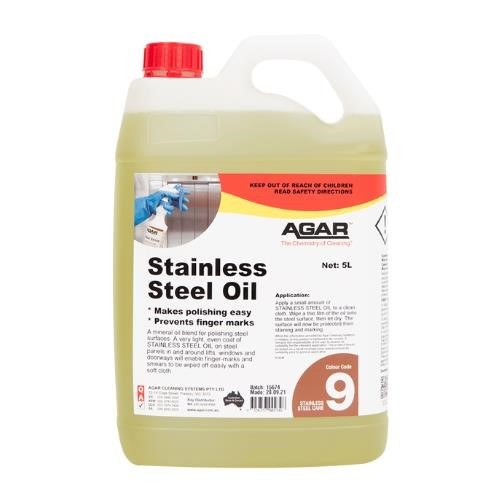 . Stainless Steel Oil is great for protecting stainless steel surfaces. It finds application for stainless panels around lifts, doorways and escalators in buildings and offices, as well as stainless steel oil appliances such as refrigerators, dishwashers and ovens (it is not for use on food contact surfaces)