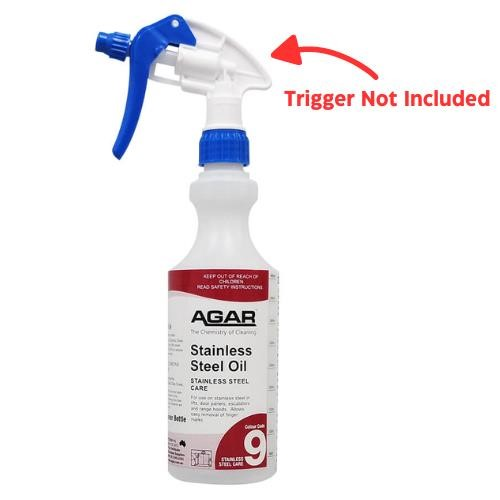 is a refillable, chemical-resistant spray bottle designed for dispensing stainless steel care and polishing solutions.