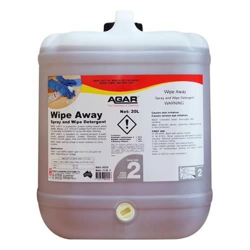 . WIPE AWAY is a powerful, grease-cutting cleaner that rapidly attacks and removes soilage from hard surfaces. It is formulated for spray-and-wipe cleaning