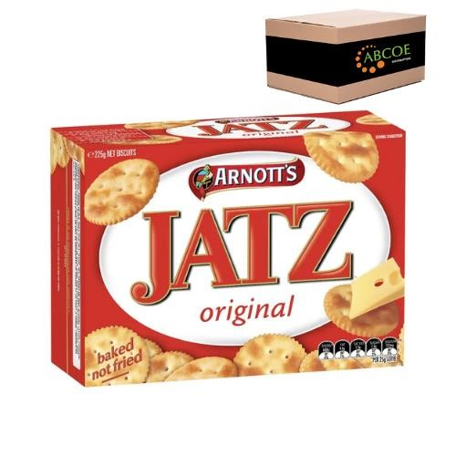 Arnott's Jatz Original biscuits are a great option for serving at your next party, function or gathering. They have a crunchy texture, an original flavour and can be enjoyed as is or with dips and cheese. They can be shared with friends, family and guests at your next party or function. You can compliment these Jatz biscuits with dips and cheese. Australian Made. Size: 225g. Quantity: 20 boxes per carton