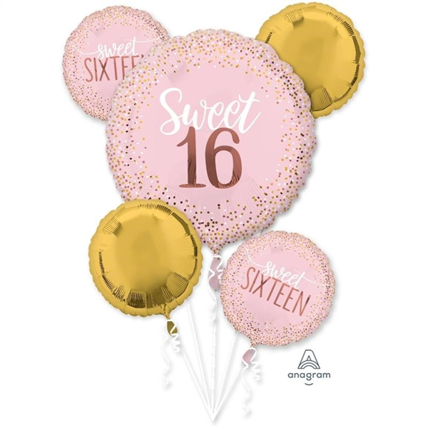 Balloon Foil Bouquet Sweet Sixteen 5Pk Uninflated