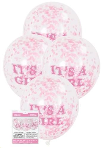 Balloons Clear Its a Girl Print with Pink Confetti 6/ Pack