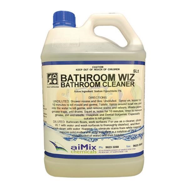 Aimix Bathroom Wiz is a fast-acting, high-performance bathroom cleaning solution formulated with stabilized sodium hypochlorite for superior disinfection and cleaning power.