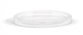 Our PET clear lids are leak proof and able to handle warm food. They are not suitable for the microwave or oven. This lid fits our 60ml sugarcane sauce cups, it does not fit our clear 60ml PLA bioplastic sauce cup. Diameter top: 70mm. Product size: 6mm H