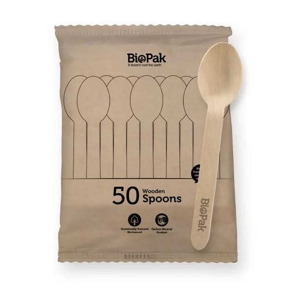 BIOPAK WOODEN SPOON PACK 50/PK