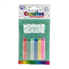 Birthday Candles with Holders. Multi Colour Pattern. Quantity: 24 Candles & Holders Per Pack