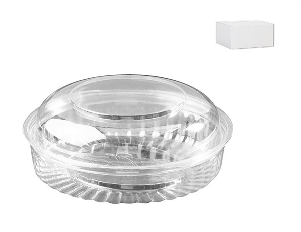 Eco-Smart Clearview Food Bowls. Hinged, Dome Lid. Clear. Size: 568 ml / 20 oz. 170 x 40 mm.Qty: 25 per sleeve. 150 per carton. Item: CA-6620DL.
