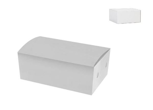 Medium Snack Boxes. Bulk Packed. White. Size: Medium. 172 x 104 x 66 mm. Qty: unsleeved. 250 per carton. Item: CA-MSBX053-W.