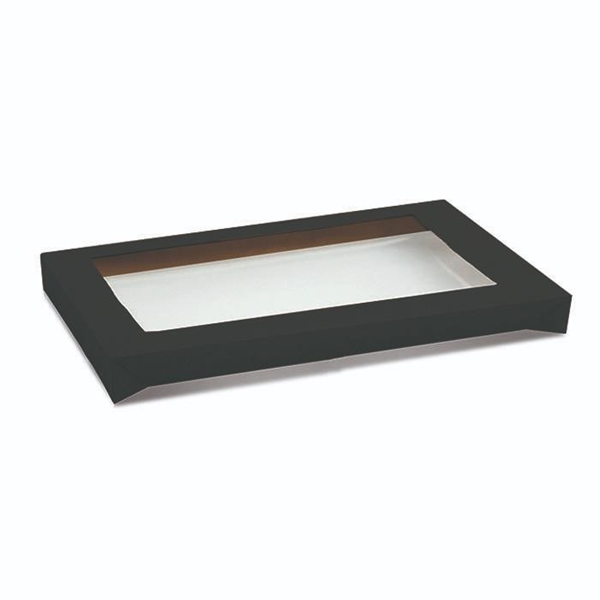 Suitable for black corrugated rectangle catering tray. Made from natural cardboard with PET window. Clear and highly transparent. To suit BLCTL