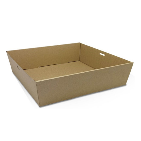 Square Catering Tray Largel – perfect for gourmet catering and finger foods, Suitable for hot and cold food. Food safe.Made from corrugated cardboard, making it strong, sturdy and recyclable. Flat packed for efficient storage and is easy to assemble. Please Note: Matching lids are sold separately - SCTLL is the matching lid for SCTL