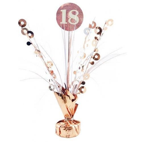 This rose gold & white number 18 centrepiece weight is approx. 165gms in weight and can be used as a stand alone table centrepiece or as a weight for your balloons! Each centrepiece weight comes in a single hangsell packet and includes a cardboard topper with a double sided message and a colour co-ordinated loop to tie balloons