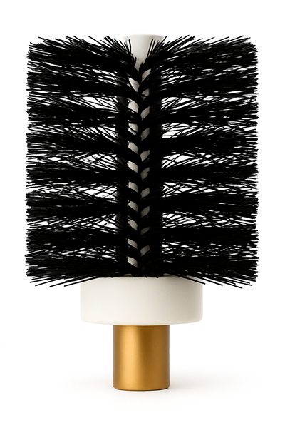 is a heavy-duty cylindrical brush head for deep cleaning of vertical shafts, chutes, ducts, and other confined spaces