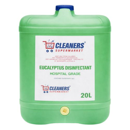 Cleaners Supermarket Disinfectant Hospital Grade Eucalyptus 20L is a professional-strength disinfectant formulated to eliminate germs quickly while leaving behind a crisp, clean eucalyptus fragrance.