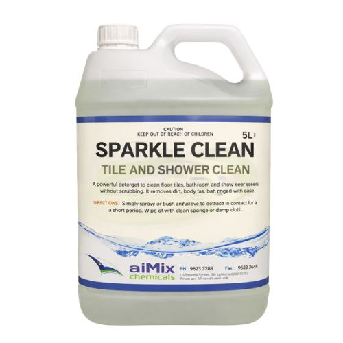Cleaners Supermarket Sparkle Clean Tile & Shower Cleaner 5Lr is a powerful bathroom and tile cleaning concentrate formulated to tackle soap scum, hard-water deposits, bath rings, body oils and general grime.
