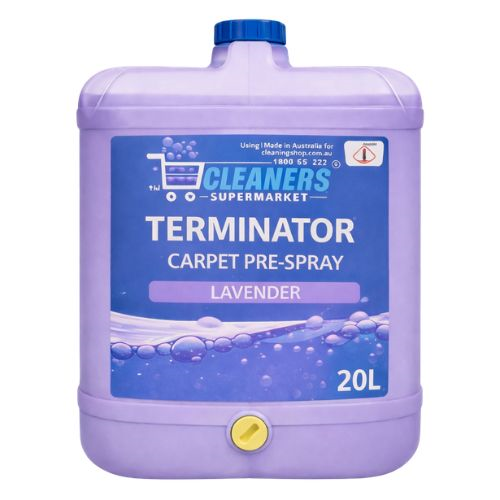 Cleaners Supermarket Terminator Carpet Pre-Spray Lavender 20L is a gentle, pH-neutral cleaner for carpets, rugs, and upholstery.