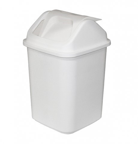 - The white polypropylene body provides strength and easy-clean performance, while the swing-top lid ensures quick and hygienic disposal.
