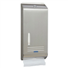 Compact hand towel dispenser in stainless-steel finish, model 4970, designed for use with compact interleaved hand towels.