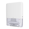 KEY BENEFITS. Holds up to 1230 towels in a compact dispenser. Continuous system provides smooth, interruption-free dispensing. Slim, space-saving design with a modern white finish. Compressed refills increase capacity and reduce storage needs. Top-up refilling anytime for added efficiency. Towels dispensed in 3 seconds to maintain washroom flow