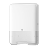 is a strong and reliable high-capacity dispenser designed for busy washroom environments. Its hygienic touch-free design ensures users only touch the towel they use, helping to reduce waste and improve cleanliness. The flexible refilling system allows for easy and convenient top-ups, while the translucent front window makes it simple to check stock levels at a glance to avoid unexpected run-outs. An innovative locking system offers the option to open with or without a key, providing added flexibility for maintenance staff. Made from durable plastic with a clean white finish, it blends seamlessly into professional washrooms. Measuring 333mm(W) x 439mm(H) x 136mm(D), it is part of the Tork H3 system for singlefold hand towels