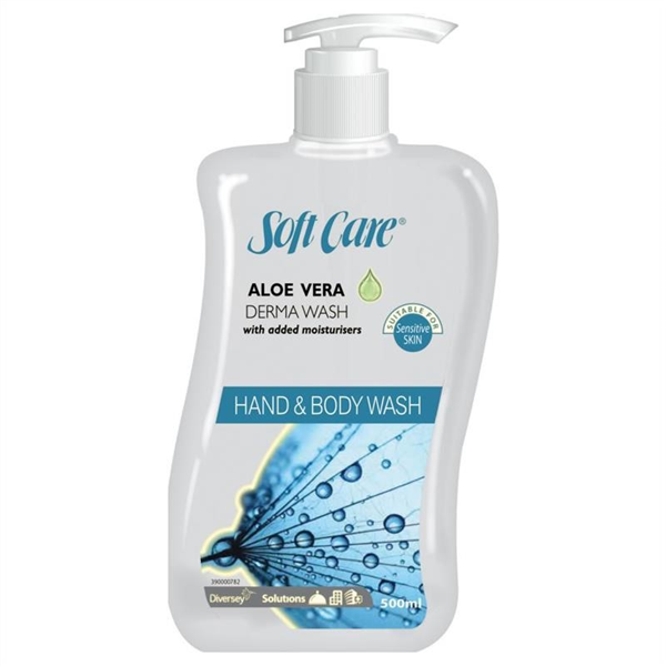 PRODUCT DESCRIPTION. Diversey Soft Care Dermawash Aloe Vera 500ml is a gentle, nourishing hand wash formulated to cleanse effectively without stripping the skin of its natural moisture. Enriched with Aloe Vera and Vitamin E, it soothes and hydrates while leaving skin soft, fresh, and moisturised after every wash. Hypoallergenic and dermatologically tested, this pH-balanced and non-toxic formula is safe for all skin types, including sensitive skin. Versatile in use, it can also double as a body wash and is septic tank friendly when used as directed, making it a reliable choice for both personal and professional settings