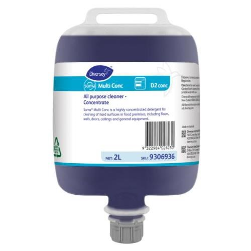 is an ultra concentrated detergent for cleaning of hard surfaces in food premises, including floors, walls, doors, ceilings and general equipment. Suma® Multi Conc D2 conc is a highly concentrated all purpose detergent suitable for manual cleaning of all surfaces in the kitchen. It is an optimal blend of anionic and nonionic surfactants and alkali, which makes it effective for removal of grease and dried-on food. The sequestrant in the formulation makes it suitable for all water conditions while improving the cleaning performance. For dosing accuracy Suma® Multi Conc D2 conc should be dosed either via the Diversey Divermite dispenser or Divermite Refill dosing system.