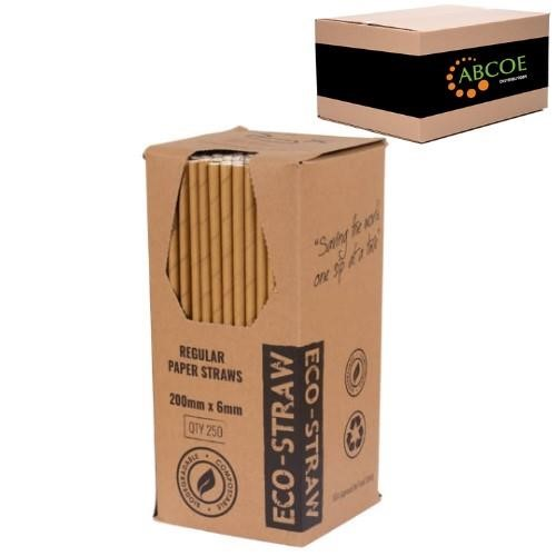 Eco Straw Regular Paper Kraft. Eco-Straw. Biodegradable. Compostable. 3 Ply. Colour: Brown/Kraft. Dimensions: 200mm x 6mm. Quantity: 2500 straws per carton