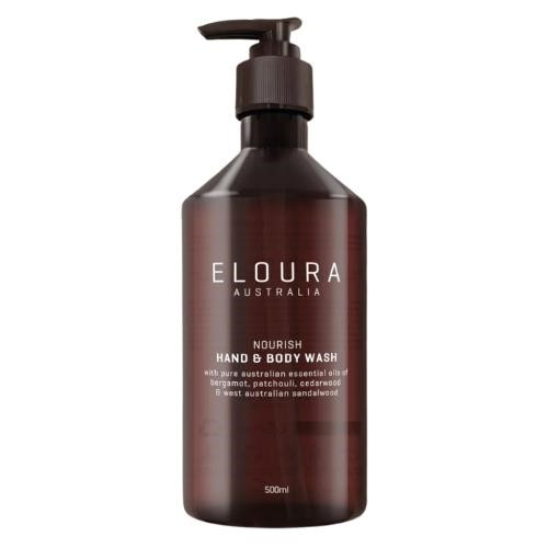 Eloura Nourish Hand & Body Wash is ustainably sourced, vitamin rich pure Australian essential oils of bergamot, patchouli, cedarwood and West Australian sandalwood, in a unique formula that balances nature and science to clean and soothe the skin. Naturally aromatic and free of chemical fragrance. Size: 500ML