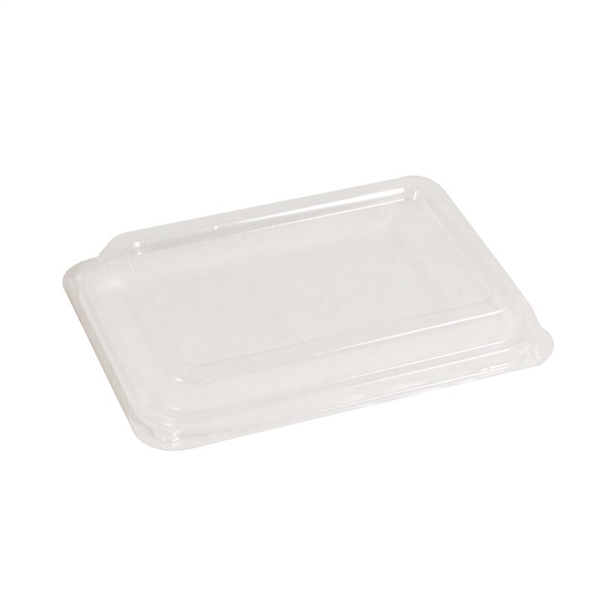 Made from PET, the most recyclable plastic in the world, the Envirochoice Lid provides perfect clarity when covering cold foods like salads, wraps, tacos and desserts. Please note this lid is not suitable for hot foods or microwaving. Lid is sold separately to the containers. Size: 143 x 130 x 20(H)mm