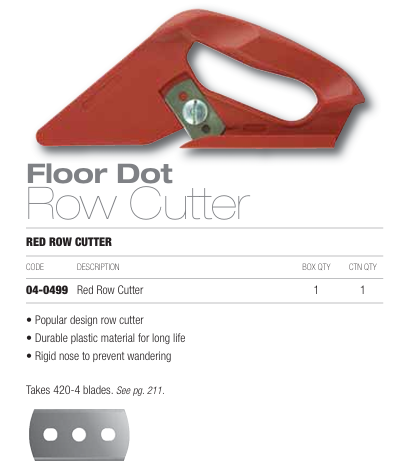 Floor Dot Red Row Cutter is a professional-grade row cutter designed for accurate cutting of carpet rows without fraying or damage to adjoining fibres.
