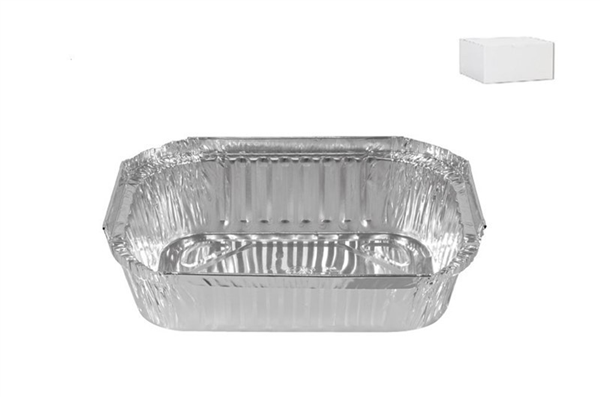 Medium Rectangular Take-Away Containers. Shallow. Volume: 560 ml. Size: Top Out: 190 x 108 mm. Fill Depth: 38 mm. Qty: 100 per sleeve. 500 per carton. BrandBuilders - Lids available. Ideal for hot wet meals. Made from foodsafe aluminium. Multiple sizes available for portion control. Ovenable. Vertical flange edge that makes the container suitable for use with a lid.