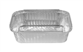 Medium Rectangular Take-Away Containers. Regular. Volume: 990 ml. Size: Top Out: 194 x 146 mm. Fill Depth: 48 mm. Qty: 100 per sleeve. 400 per carton. Ideal for hot wet meals. Made from foodsafe aluminium. Multiple sizes available for portion control. Ovenable. Vertical flange edge that makes the container suitable for use with a lid.