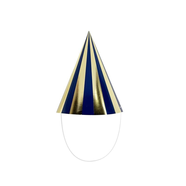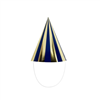 Gingham Blue Party Hat 6pk. Material: Paper. Size: 16x10cm. Colour: Blue and Gold. Quantity: 6pk