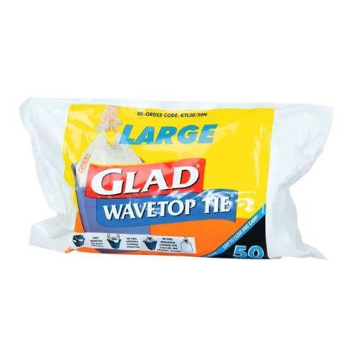 Glad Kitchen Tidy Bags Wavetop Tie Lge 36L 50/PK