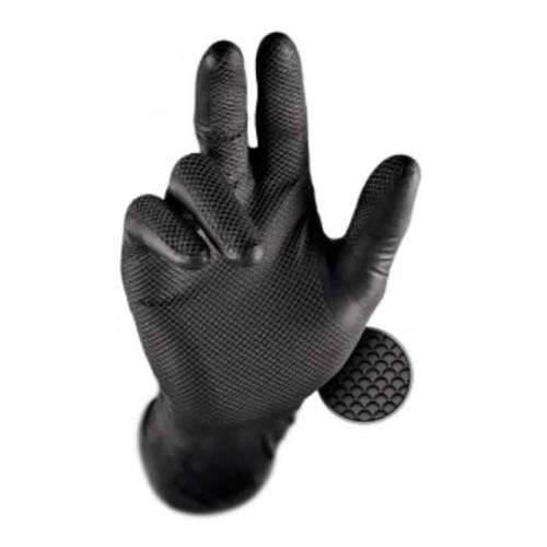 The innovative fish scale grip will cure your butterfingers, even when covered in grease, thanks to the patented design that works regardless of wet or dry conditions. Tougher than the rest, these heavy-duty gloves are made from a specifically formulated nitrile organic compound, which offers protection from most of the substances you work with. They’re touch-screen friendly, too, for when you’re using a diagnostic tablet or when a client calls. Patented fish scale grip is suitable in both wet and dry environments. Premium 100% nitrile. Chemical resistance. Silicone free. Touch screen friendly. Superb snug fit. Special Nitrile Formulation Offers Protection Against: Break Fluid, Hydraulic Oil, Grease, Bleach. Clutch Fluid, Hydrogen Peroxide, Engine Oil, Sodium Peroxide and Some Solvents. Colour: Black. Size: Medium. Quantity: 50 per pack