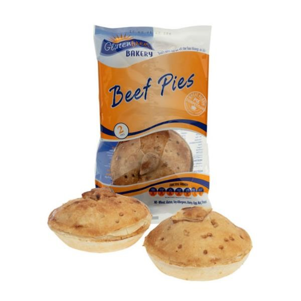 Gluten Free Bakery Beef Pies 2/PK are hearty savoury pies filled with seasoned beef and rich gravy encased in a gluten-free pastry.
