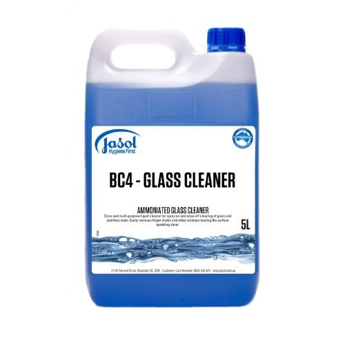 PRODUCT DESCRIPTION. BC4 Glass Cleaner 5L is a ready-to-use, high-performance cleaner formulated to deliver a streak-free shine on glass, mirrors, stainless steel, and other polished surfaces. Its fast-drying, non-flammable formula cuts through fingerprints, smudges, dirt, and grime with ease, leaving surfaces crystal clear and sparkling. HALAL approved and suitable for use in commercial, industrial, and residential settings, this versatile spray-and-wipe cleaner requires no dilution—just apply and wipe for instant results