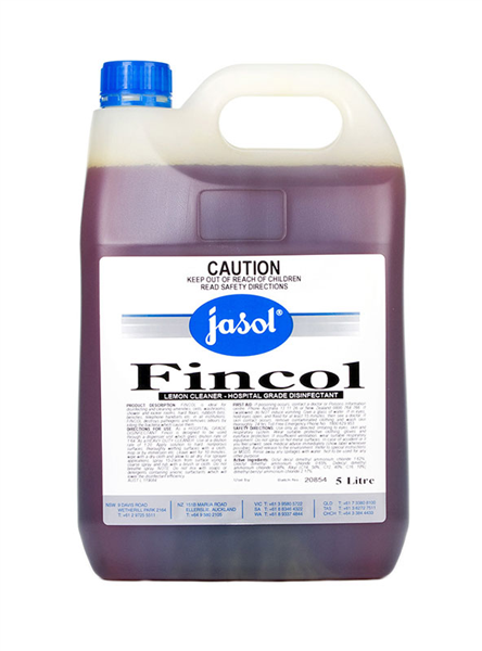 PRODUCT DESCRIPTION. FINCOL 5L is a powerful, concentrated hospital-grade disinfectant formulated to deliver effective cleaning, sanitising, and reodorising across diverse industries. Certified under the Global Medical Device Nomenclature (GMDN: 9950) and TGA approved (AUST L 346580), FINCOL meets rigorous hygiene standards for hospital-grade disinfection. Its non-acidic formula is safe for most hard surfaces and ideal for healthcare facilities, aged care, hospitality, food processing, and commercial environments. This dual-action disinfectant cleans and sanitises while leaving a fresh, hygienic scent after each use