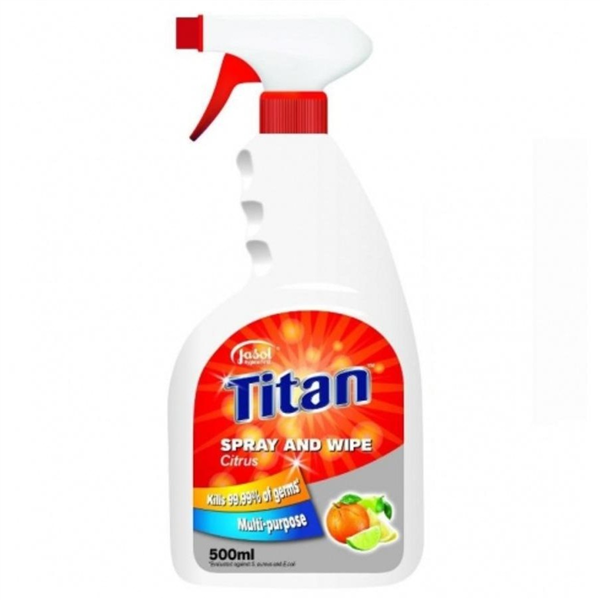 Jasol Titan General Purpose Spray & Wipe Citrus 500ml is a ready-to-use cleaner designed for fast and effective removal of dirt, grease, and everyday grime.