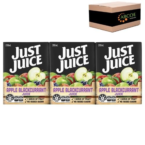 Just Juice Apple & Blackcurrant flavour is 99.9% fruit juice that has no added preservatives and is high in vitamin C, perfect for packed lunches, homes, picnics, BBQs, offices and more. No preservatives. No added sugar. Never run out of your favourite fruit juice. Convenient and handy poppers. Flavour: Apple & Blackcurrant. Size: 200ml. Quantity: 4 x 6 packs per carton (24 poppers per carton)