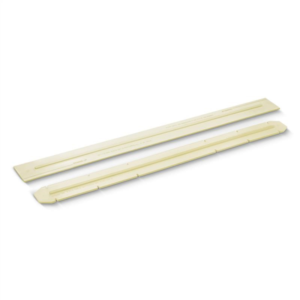 Squeegee blade kit includes front and rear squeegee blades. Slotted squeegee blades of high-quality, oil-resistant, hard-wearing, transparent polyurethane. For sensitive floors. Length: 870mm. Colour: Transparent. Compatible Machine: BD 50/50. Quantity: 2 - Front & Rear Blades