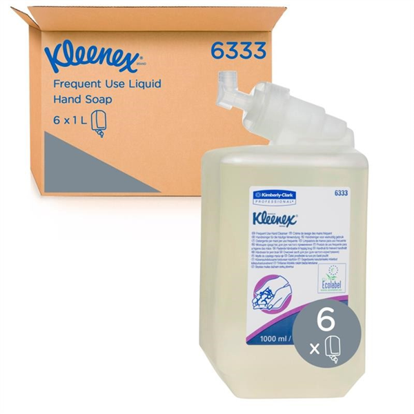 is a premium-quality liquid hand soap formulated for regular handwashing in professional settings. Certified by HACCP International, this trusted hand hygiene solution effectively cleans while being gentle on the skin, making it suitable for frequent use across a wide range of industries. Each carton contains six sealed 1L refill cartridges that are easy to load and hygienically protected prior to use, ensuring safety and convenience. Designed for use with Kimberly-Clark Professional compact push dispensers (69480 White, 7173 Black, 6341 Metallic), the system provides smooth, single-handed operation and reliable dispensing every time